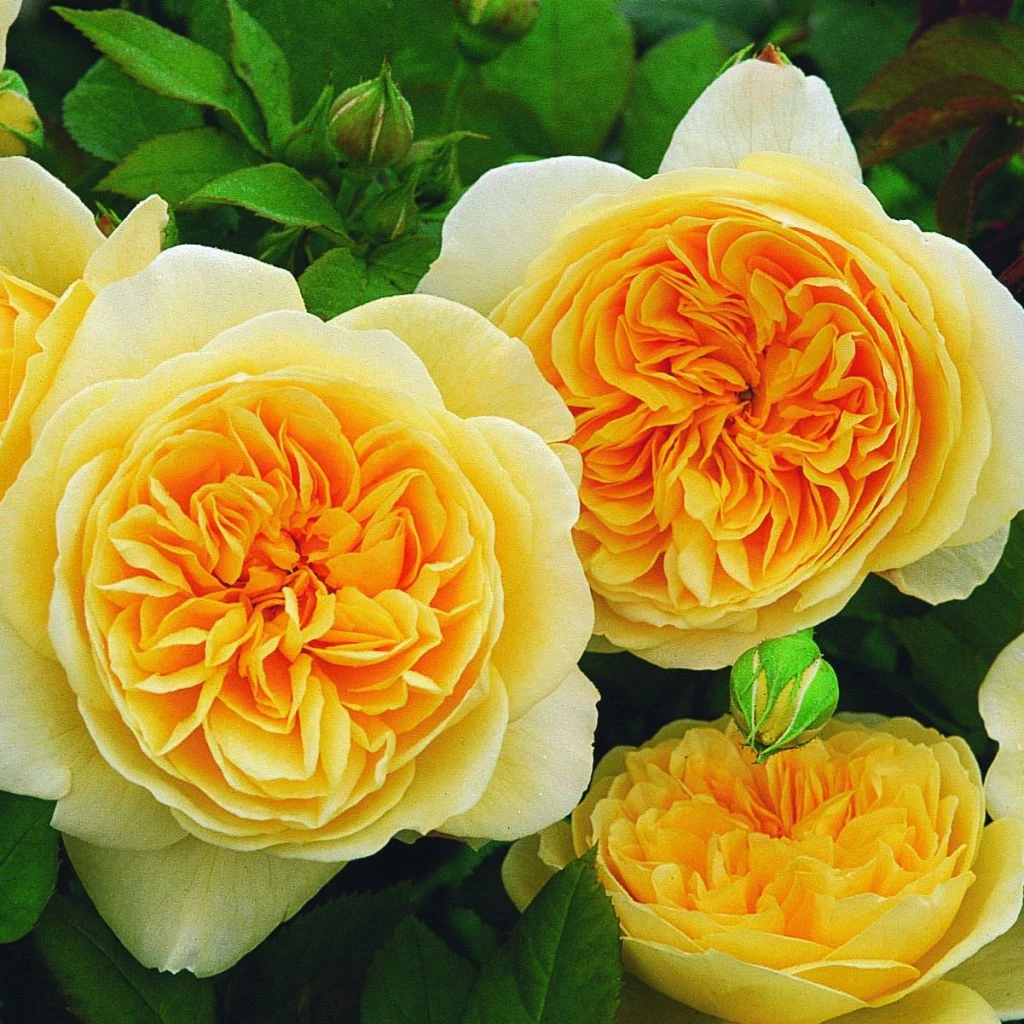 Avec ses roses aux teintes solaires, ce rosier Teasing Georgia se laissent accompagner par les plantes vivaces et la gamme de couleur de votre choix. Que l’on apprécie ou pas le jaune au jardin, ce rosier est idéal pour éclairer, réchauffer ou égayer un coin un peu triste. Dans les régions où le soleil d’été est ardent et la lumière brutale, le jaune de ses fleurs, d’une rare élégance, s’accorde à merveille avec les fleurs rouges. Sous un ciel laiteux, il animera un massif de fleurs blanches ou bleu pâle. Si vous disposez d’assez de place, les Roses Anglaises, Anciennes ou Arbustives, sont magnifiques plantées par groupes de trois sujets. Elles pousseront ensemble pour former ‘un seul’ arbuste opulent qui fleurira encore plus généreusement.